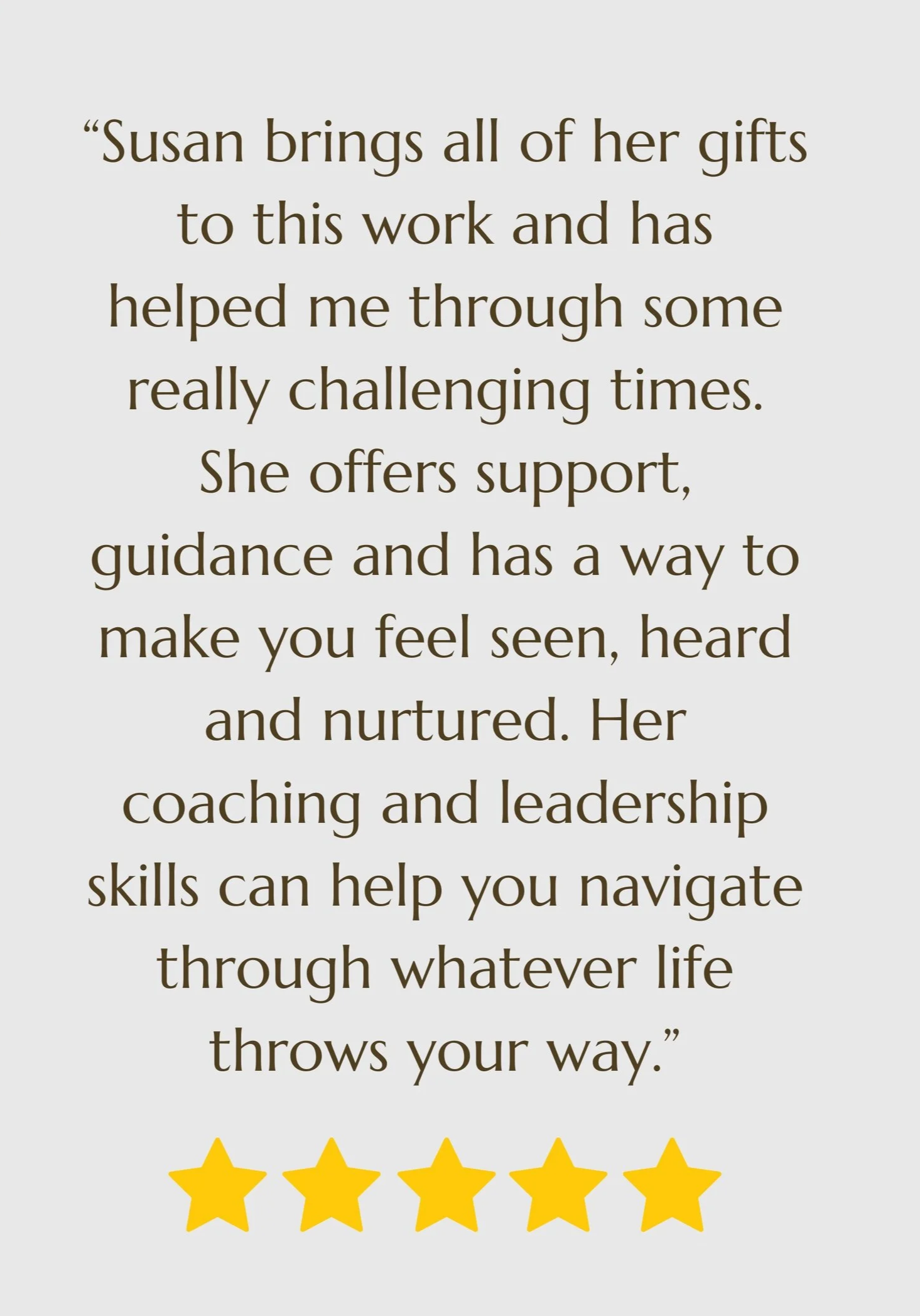 “From the first time I met Susan, and continually since then, I’ve felt completely witnessed, supported,